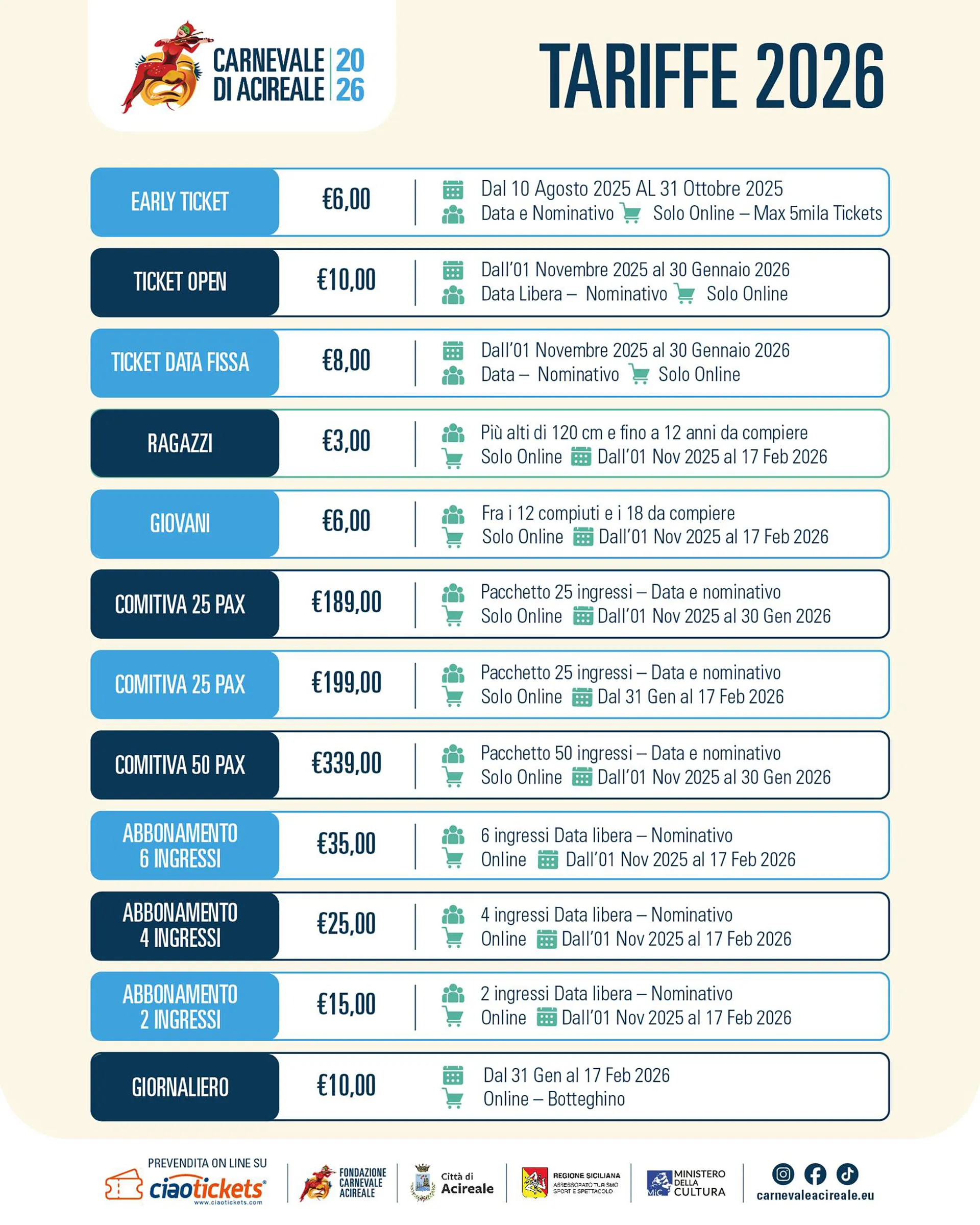 ACQUISTA ORA I TUOI TICKET 2026 IN ANTICIPO E RISPARMIA! CLICCA QUI!