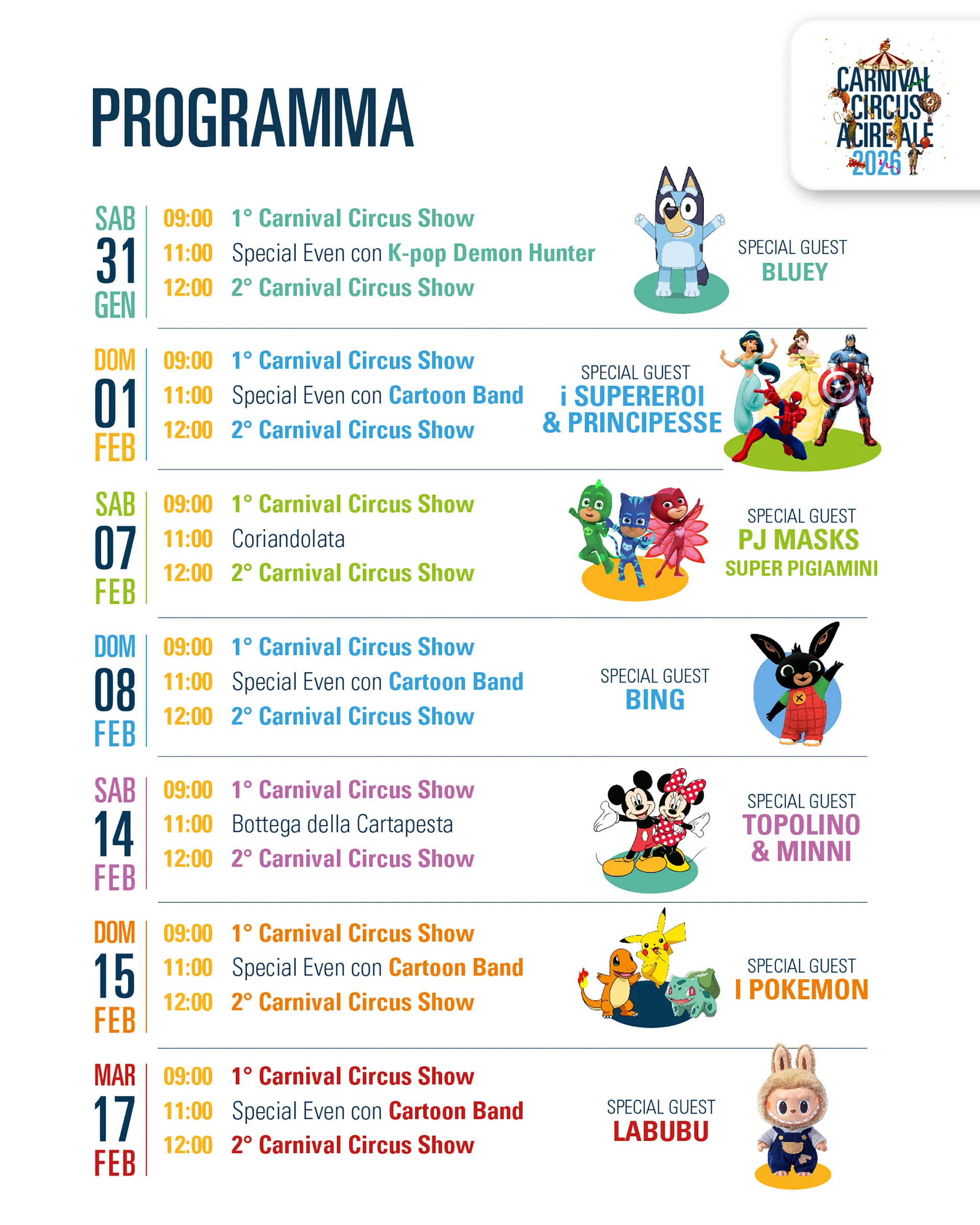 CARNIVAL CIRCUS 31 GENNAIO 1-7-8-14-15-17 FEBBRAIO