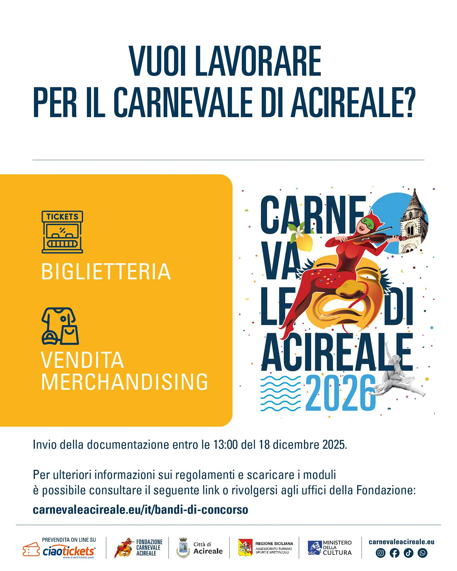VUOI LAVORARE PER IL CARNEVALE DI ACIREALE 2026?