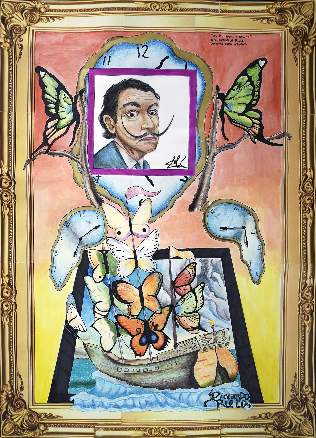 Un viaggio onirico tra sogno e verità, dove le apparenze si dissolvono per lasciare spazio all’essenza. “Tra illusione e realtà” riflette sulla fragilità della percezione: ciò che crediamo reale spesso è un riflesso. Tra giochi di specchi e fiori sospesi, figure leggere cercano la verità dietro la maschera. Il confine tra fantasia e consapevolezza si fa sottile e l’uomo cammina in equilibrio tra desiderio e autenticità. Un invito a guardare oltre le illusioni e a riscoprire la bellezza della realtà.